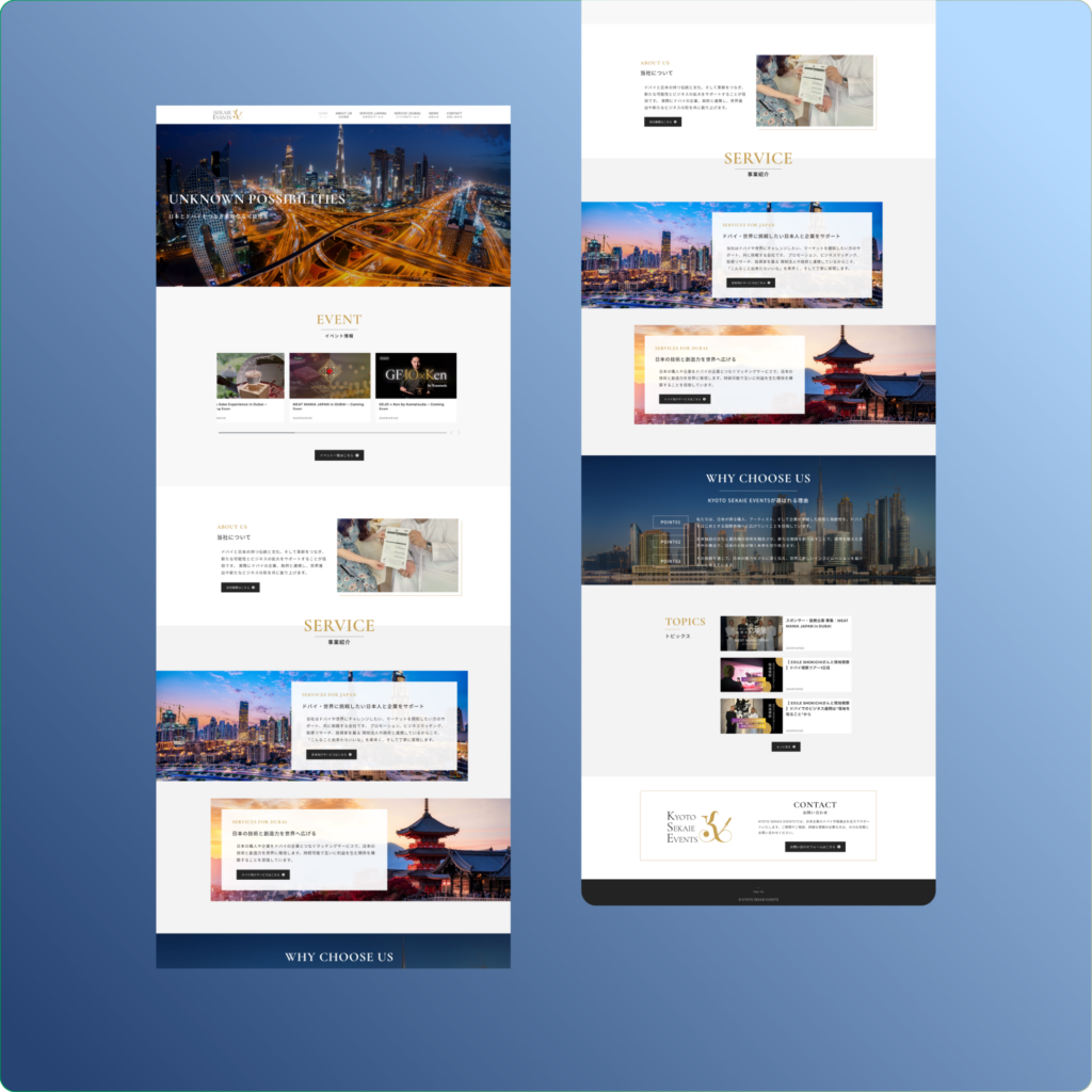 日本企業や個人がドバイ進出や現地イベント開催を検討する際に感じやすい距離感や不安を取り除き、信頼できる実行パートナーとして認識してもらうことを目的に設計しました。サービス内容の説明以前に、「現地で本当に動かせる組織か」を判断できる情報整理が求められていました。