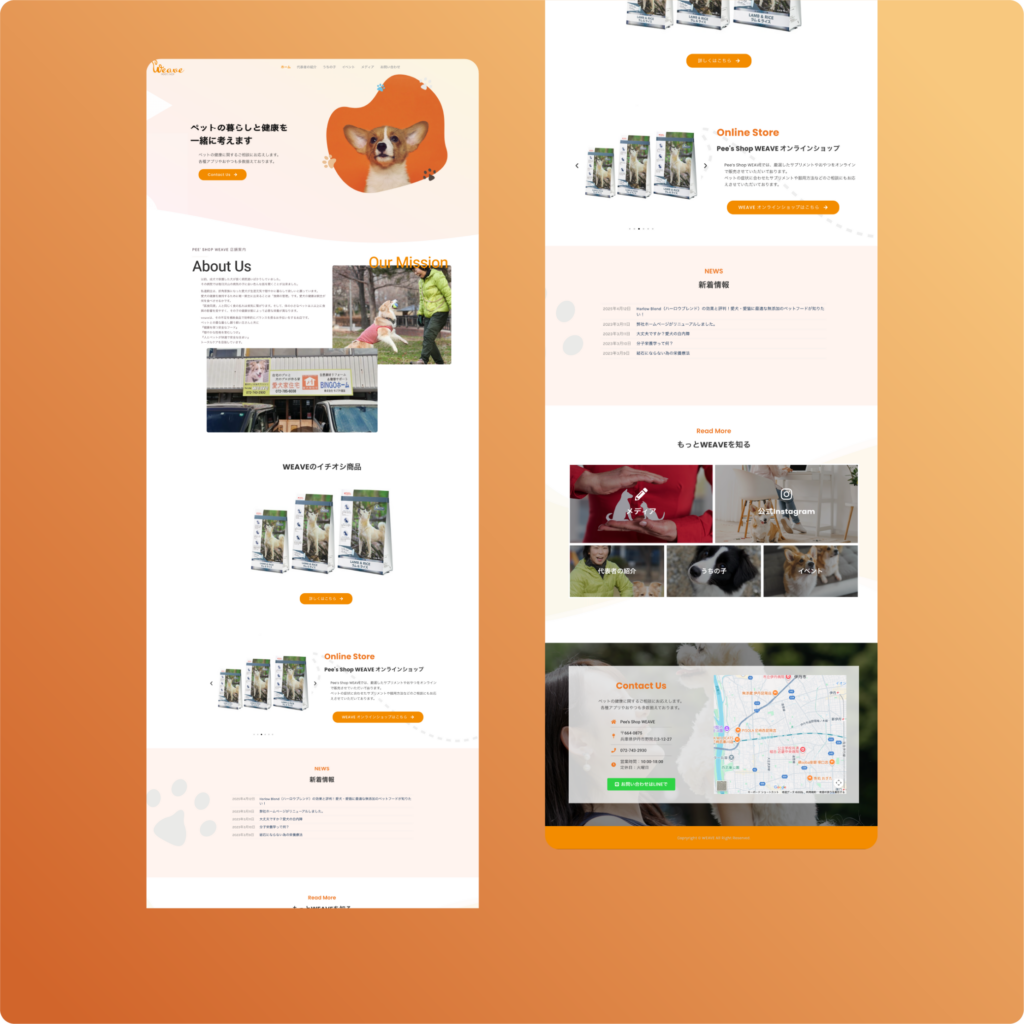 ペットフードの販売だけでなく、店舗としての姿勢や考え方を含めて信頼感を伝えることが目的でした。「ペットの暮らしと健康を一緒に考える」というブランド姿勢を可視化し、信頼されるパートナーとしての認知を広げる必要がありました。