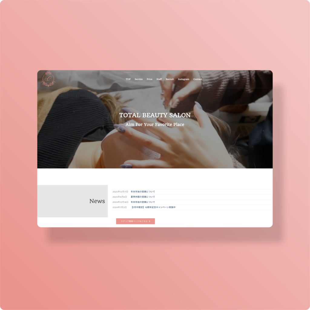 本サイトの目的は、美意識の高い顧客層に対し、一箇所で全身の美を整えられる「トータルビューティー」としての利便性と、サロンの洗練された世界観を伝え、新規予約を獲得することです。複数のメニューを扱うからこそ、各技術の専門性とスタッフの親しみやすさを可視化し、安心感を提供する必要がありました。