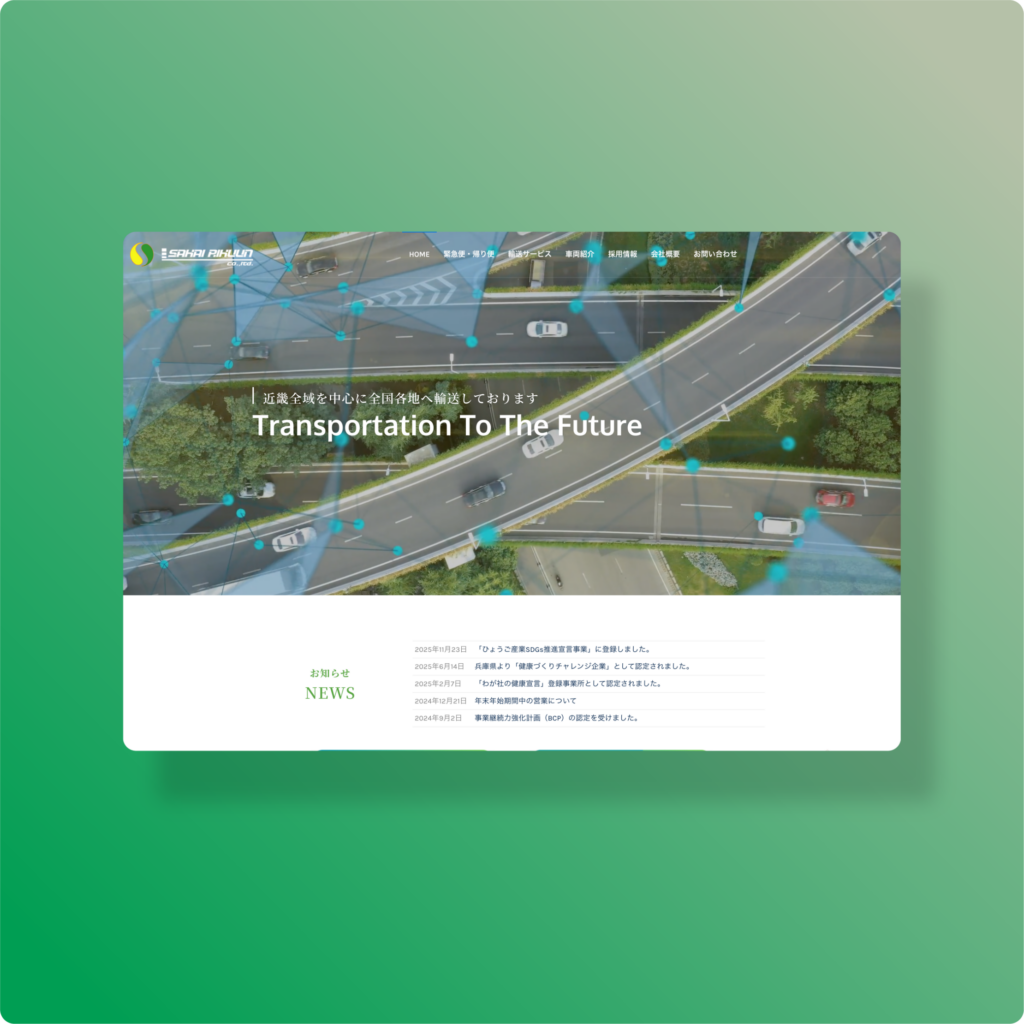 本サイトの目的は、自社の信頼性と先進性を示し、新規取引の獲得および採用活動の強化につなげることです。安定した輸送体制とSDGsへの取り組み、そして実際に働く環境の魅力を多角的に発信し、企業の透明性を高める必要がありました。