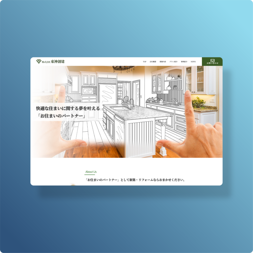 本サイトの目的は、住まいに関する悩みを持つ地域住民に対し、同社の「提案力」と「施工実績」を提示し、リフォームや新築の相談・見積もり獲得につなげることです。「快適な住まいに関する夢を叶える」というメッセージを軸に、大手にはない柔軟な対応力と、暮らしに寄り添うパートナーとしての信頼感を可視化する必要がありました。