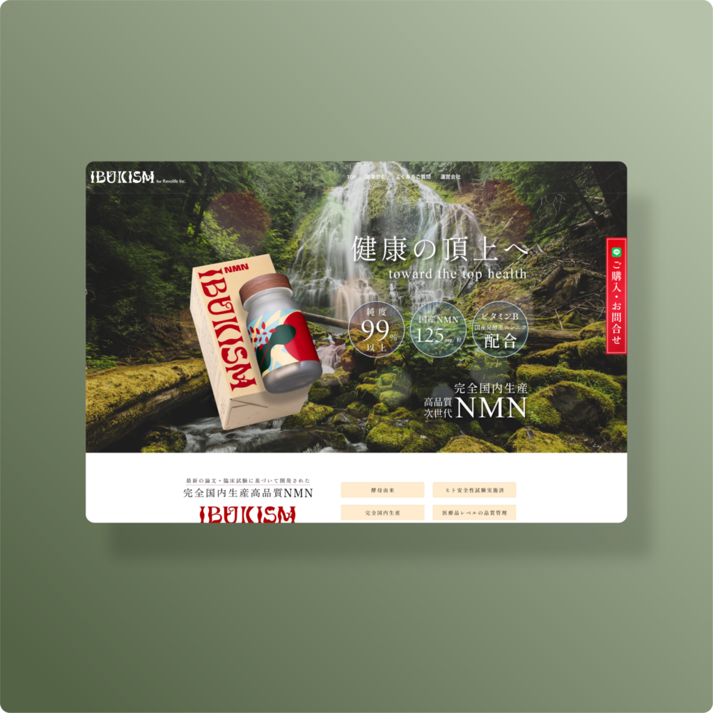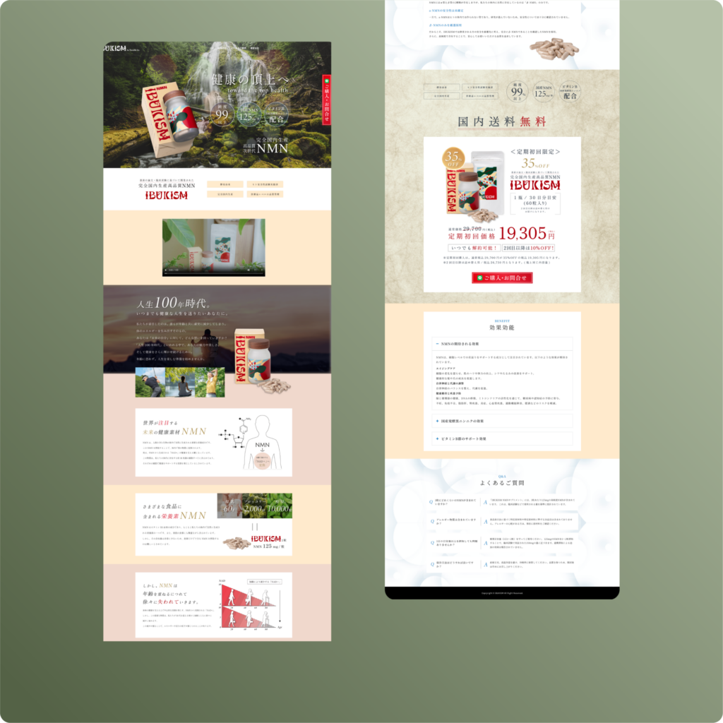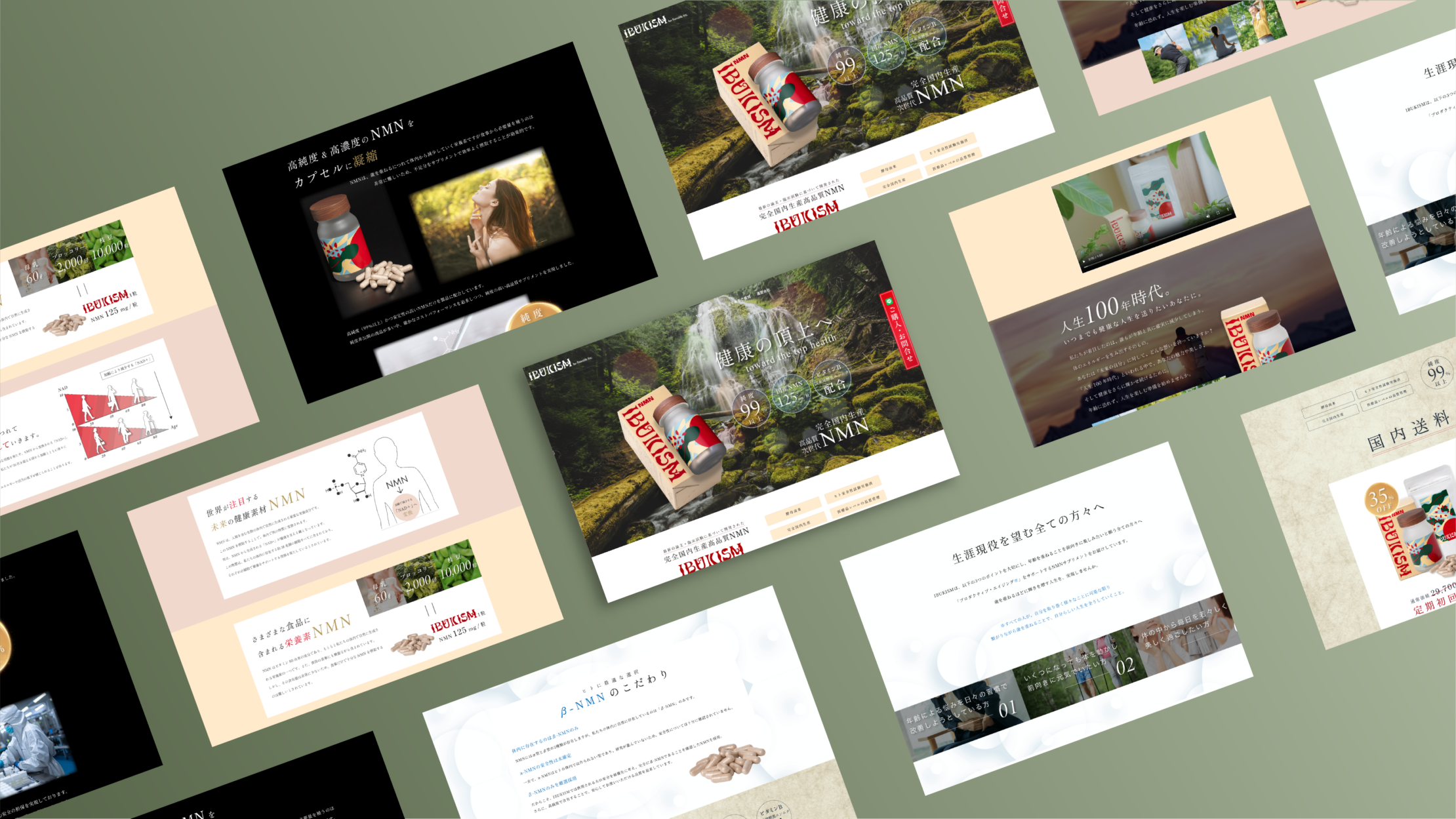 NMN配合サプリメントという専門性の高い商材に対し、「何がどう良いのか分からない」という初見の迷いを解消し、安心して購入判断ができる状態をつくることを目的に設計しました。機能性だけでなく、日常に取り入れる価値まで含めて伝える必要がありました。