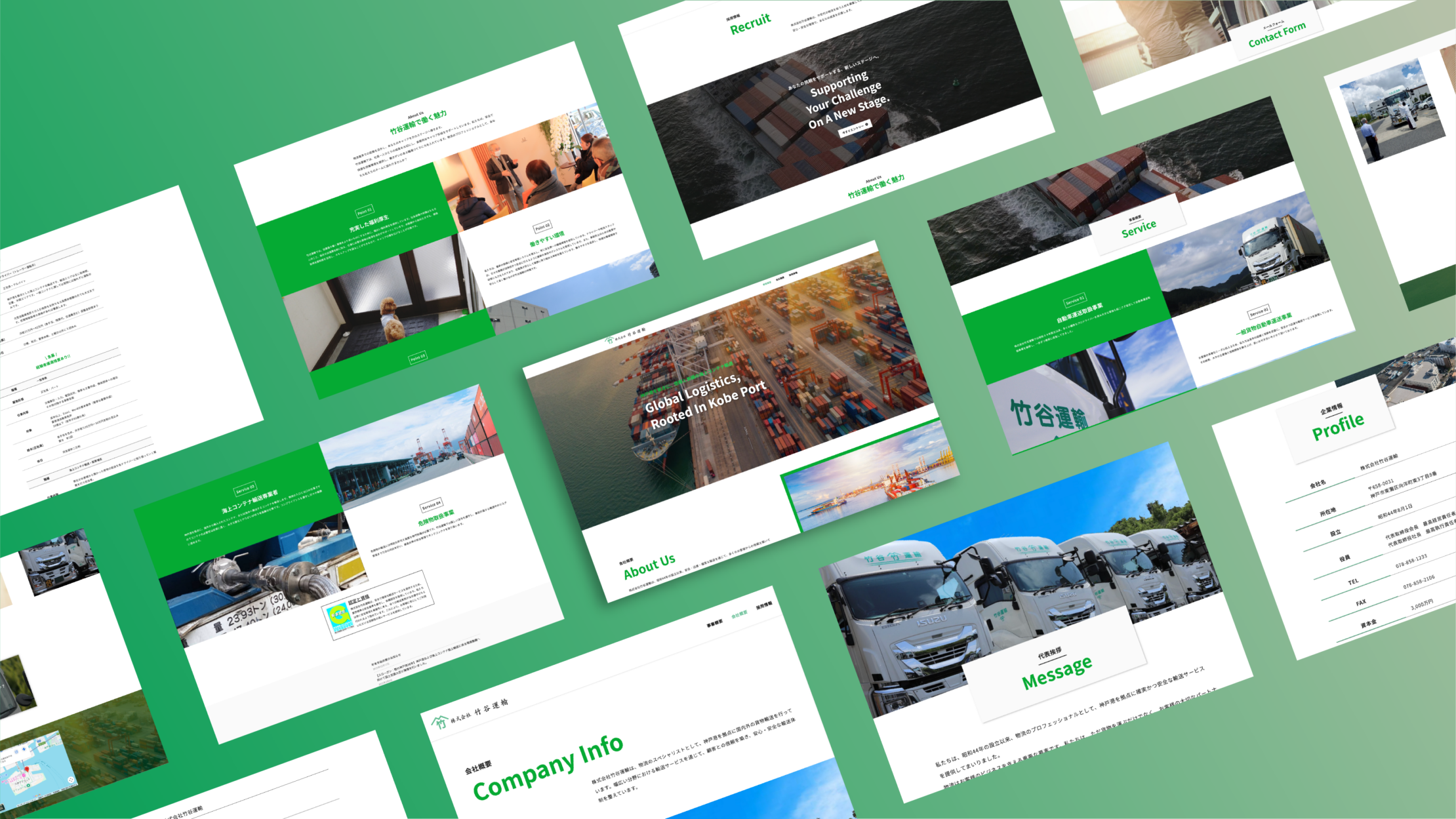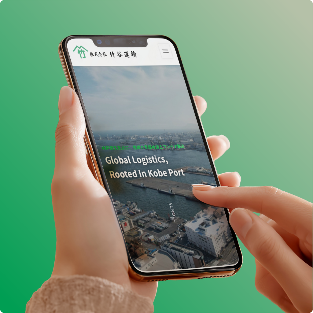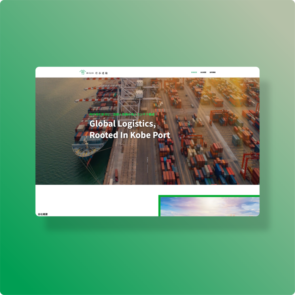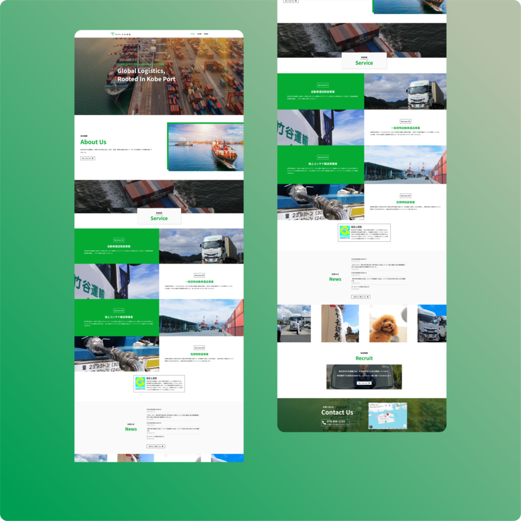 神戸港を拠点とする事業特性を踏まえ、TOPページでは港湾の空撮ビジュアルを用いることで、事業領域を一目で理解できる導線を優先しました。サービスは4つに分類し、文章量を抑えたカード形式とすることで、業務範囲をスムーズに把握できる構成としています。また、コーポレートカラーのグリーンを効果的に用い、信頼性と安全性を視覚的に印象づけています。