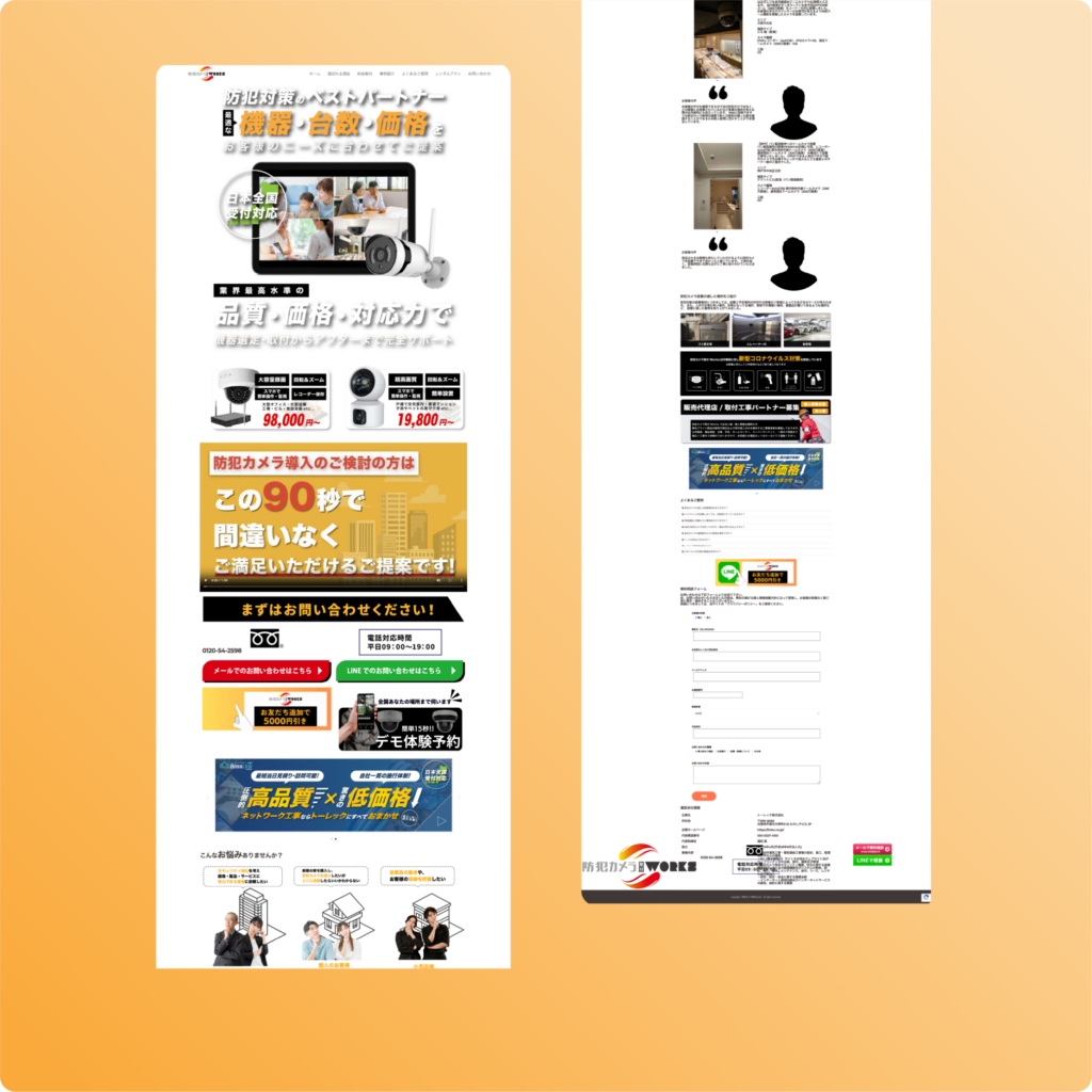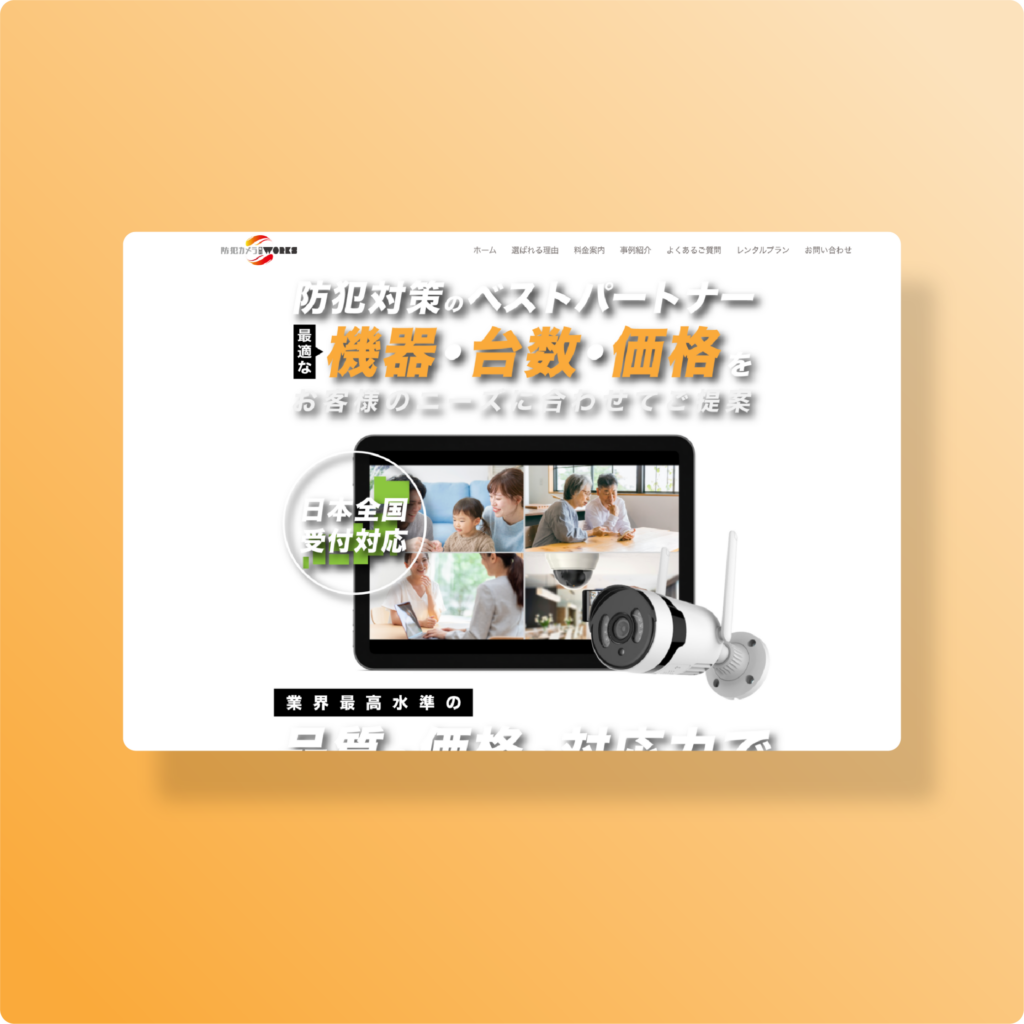本サイトは、防犯対策を検討されている方からの速やかな問い合わせ獲得を目的に設計しています。機器選定から設置、アフターサポートまで一貫して対応できる体制と、16年の実績を明示することで、「どこに依頼すべきか分からない」という検討段階での迷いを解消する必要がありました。