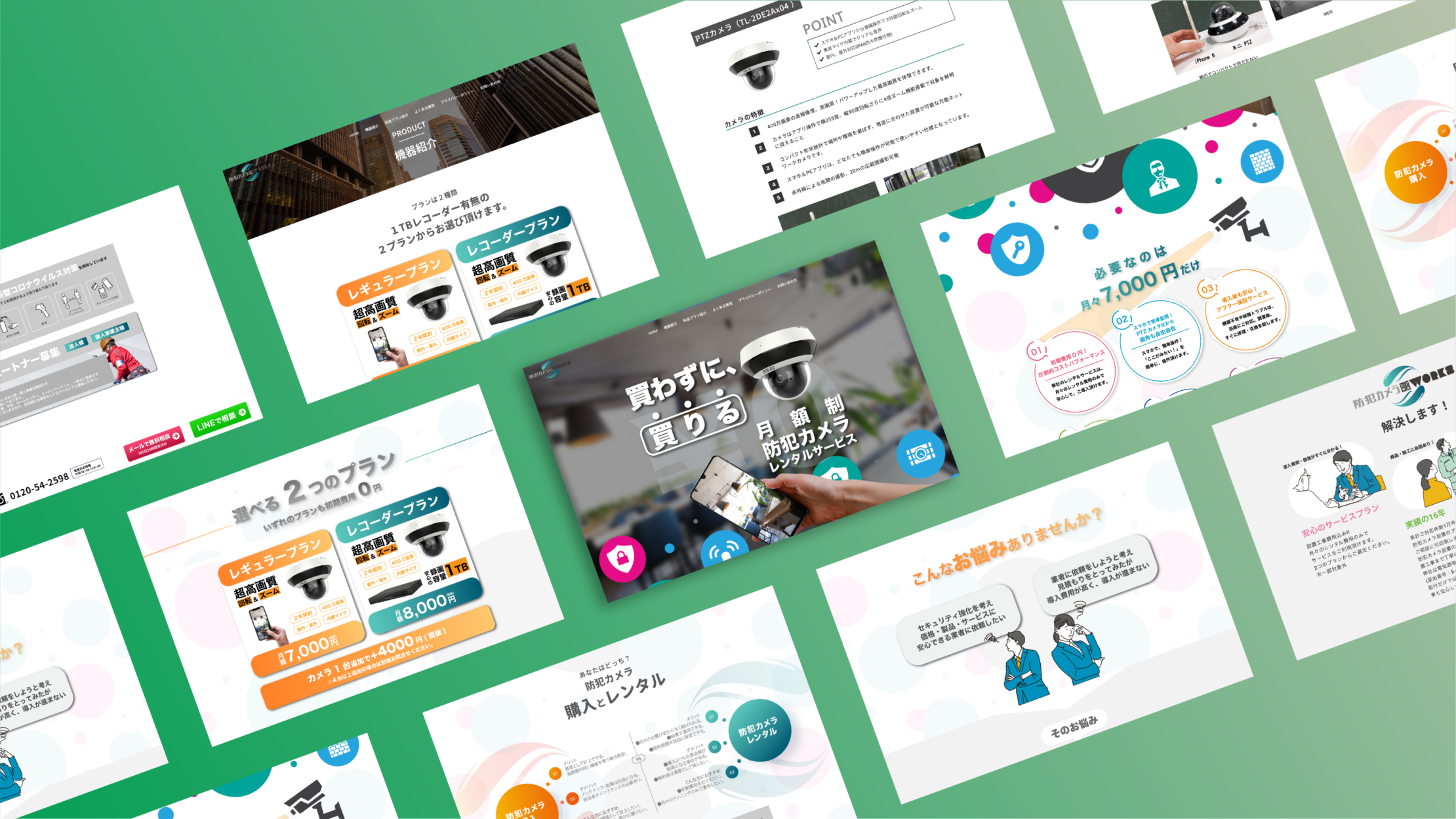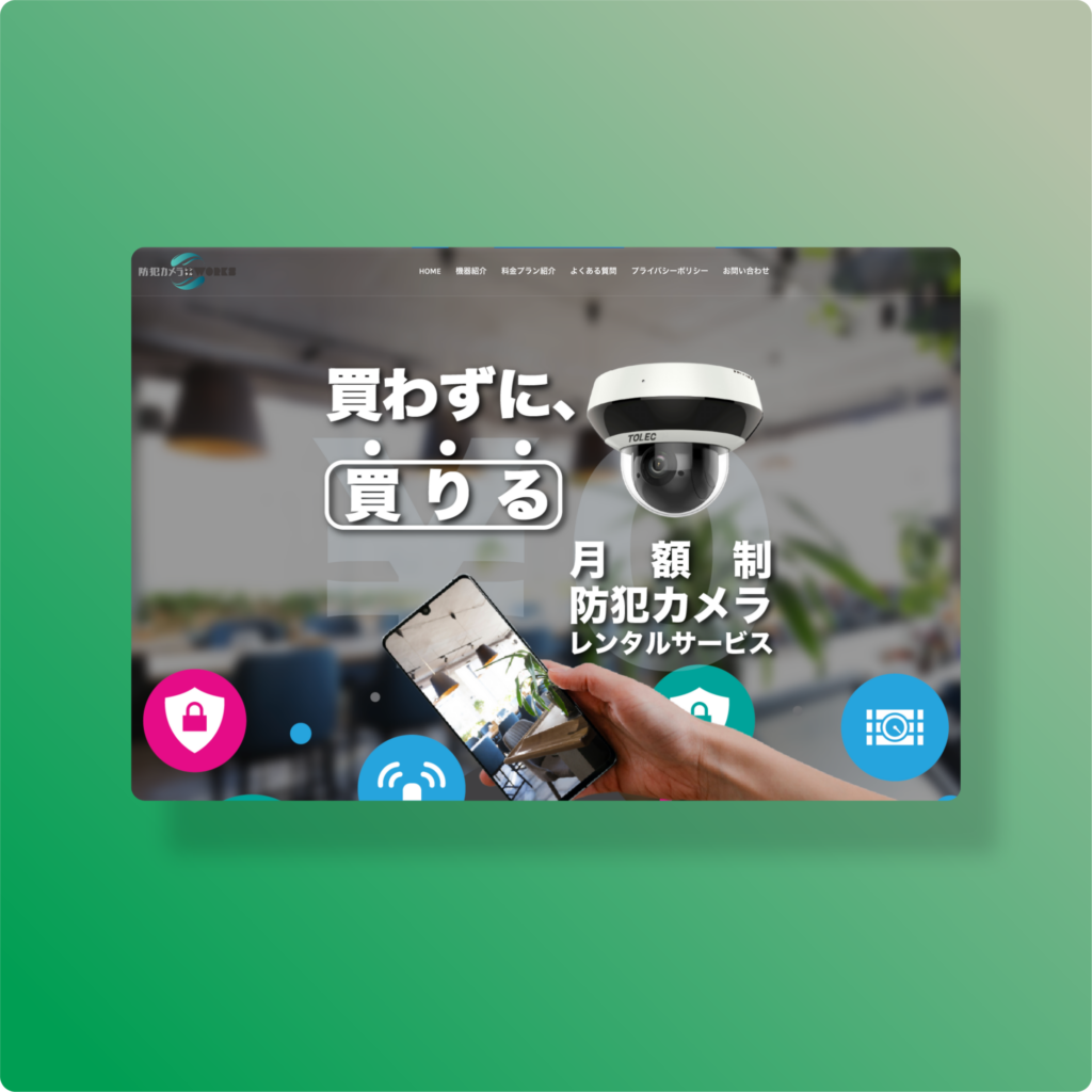 「買わずに、借りる」というメッセージを軸に、情報の分かりやすさを重視したレイアウトを採用しました。複雑な仕組みを図解やステップ形式で整理することで、防犯カメラに詳しくない方でも検討しやすい導線を実現しています。