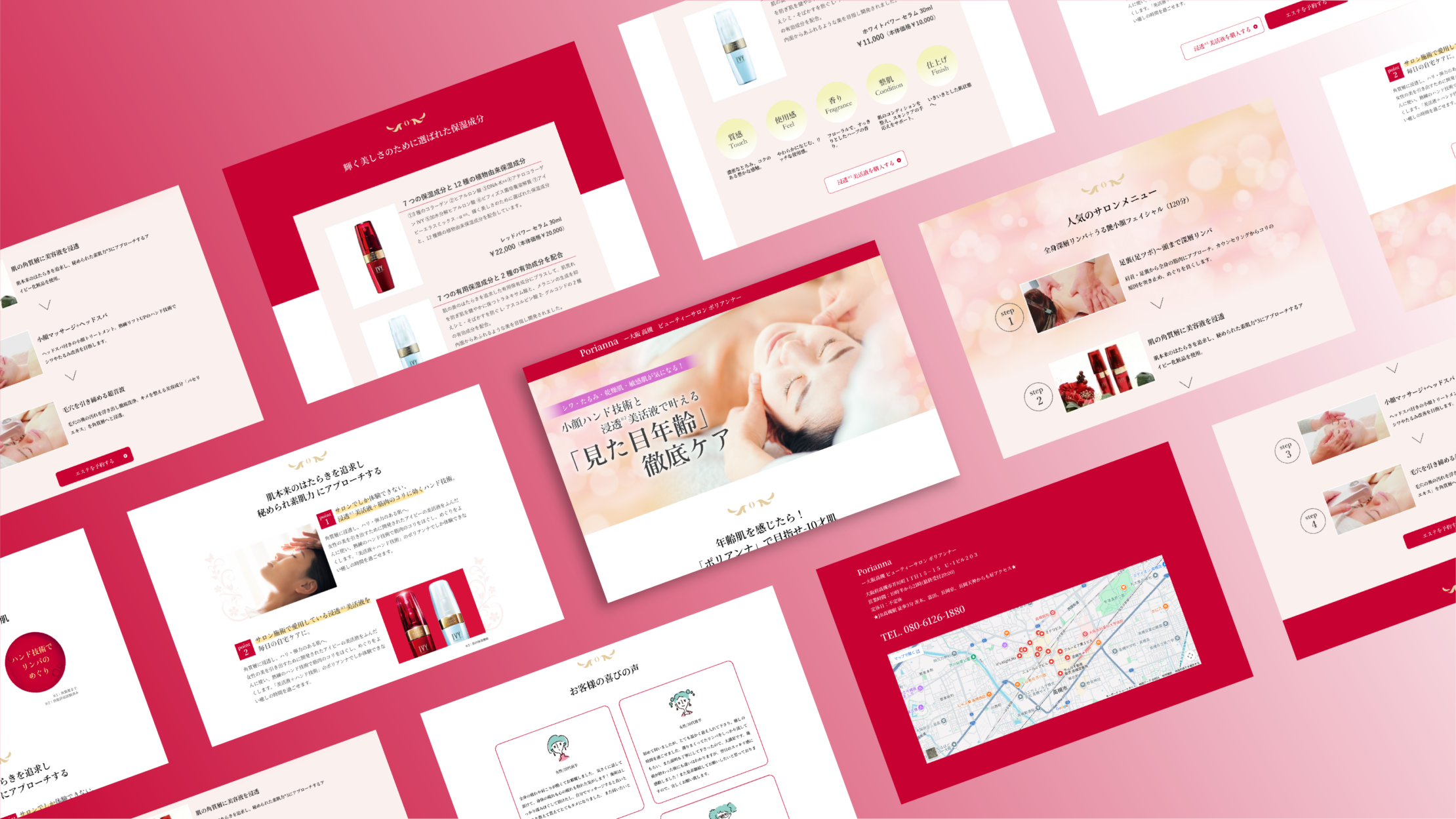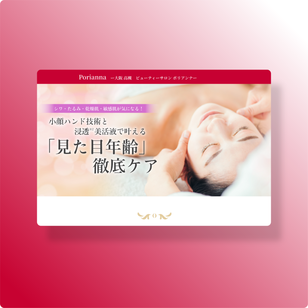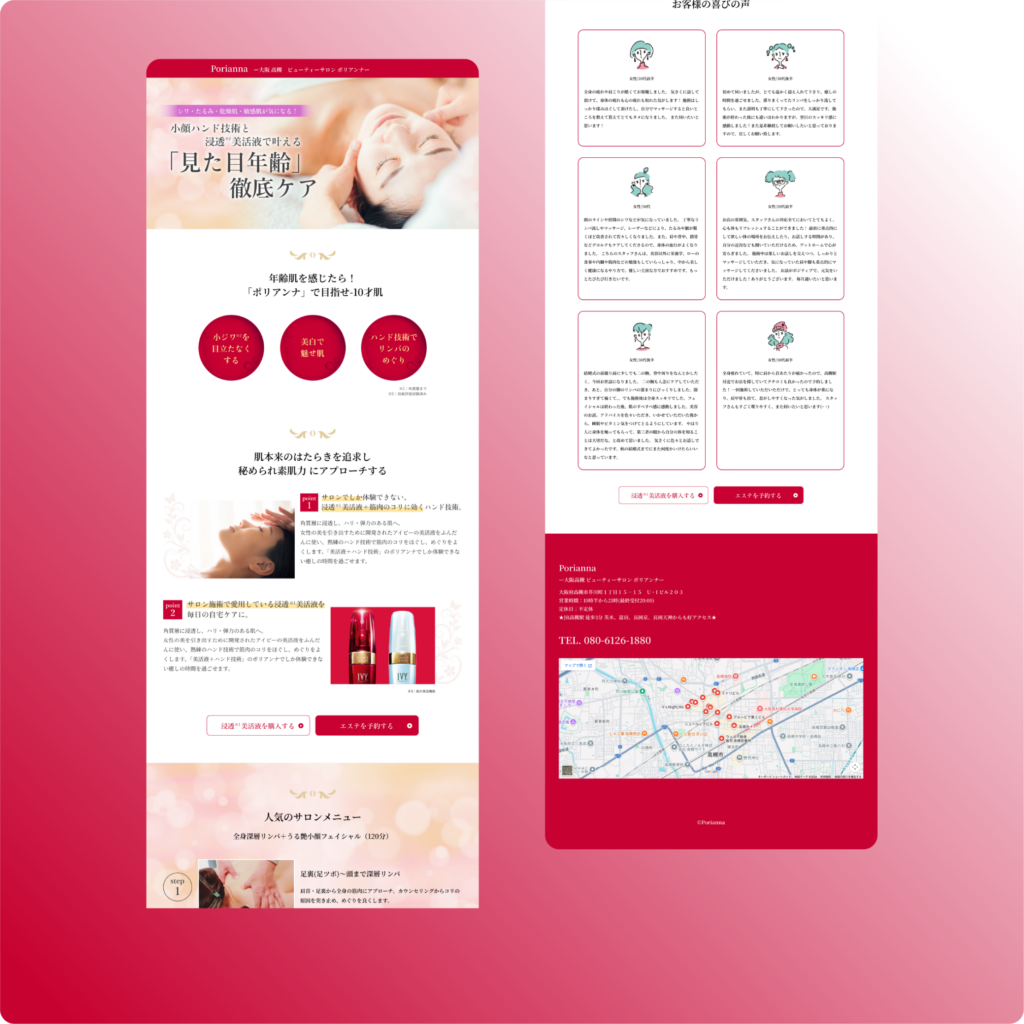 ポリアンナは、施術メニューだけでなく「年齢や肌状態に合わせた向き合い方」を重視している点が独自の特徴でした。そのため構成では、価格やメニューを前面に出さず、考え方→施術の流れ→利用者の声という順で情報を配置しています。これは、条件比較を先行させるとサロンの価値が価格判断に埋もれてしまうためです。