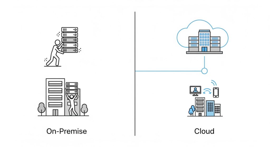 一方、クラウドは、GoogleやAmazonといった巨大な企業が運営するデータセンター(超巨大な発電所)から、インターネットという名の電線を通じて、必要なサービス(電気)を使いたい分だけ利用するイメージです。これが「電力会社」の仕組みです。